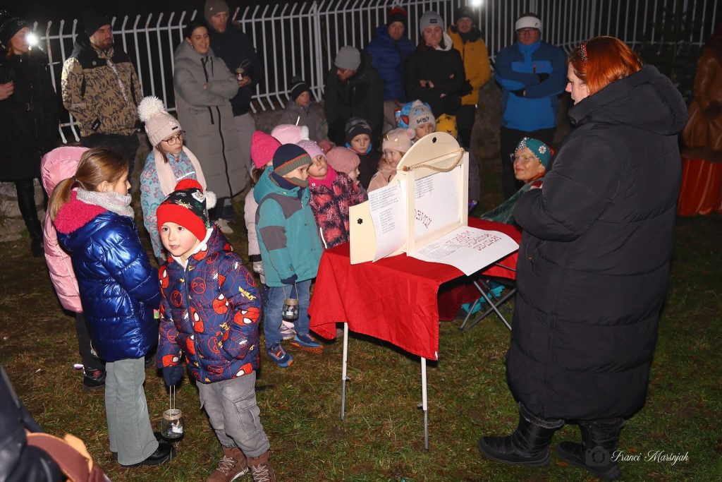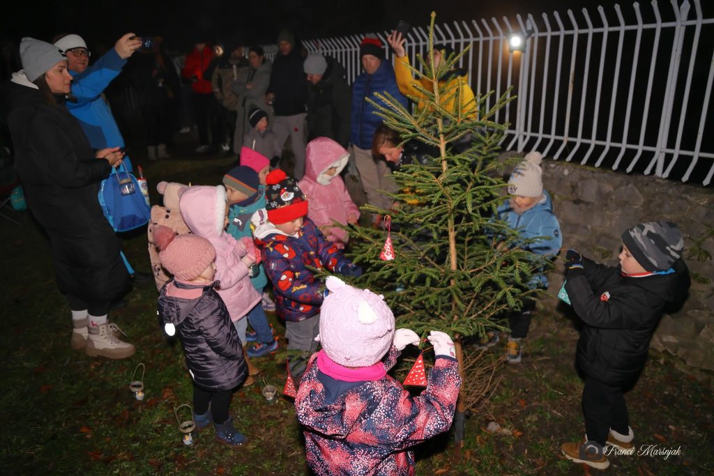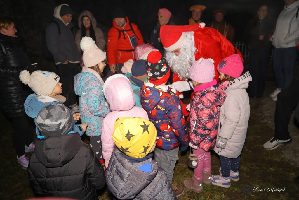 Na povabilo turističnega drustva Šalek, se vedno radi odzovemo. Naredili smo si lučke in se s starši odpravili na nočni pohod do Šaleskega gradu. Na gradu nas je pričakala grajska gospoda, prijazna ga. Suzana, pa nam je pripovedovala ob kamišibaju. Okrasili smo smrečico in se pogreli s toplim čajem, za posladek pa je poskrbel Božiček, ki nas je presenetil z bonboni. Bilo je čarobno.