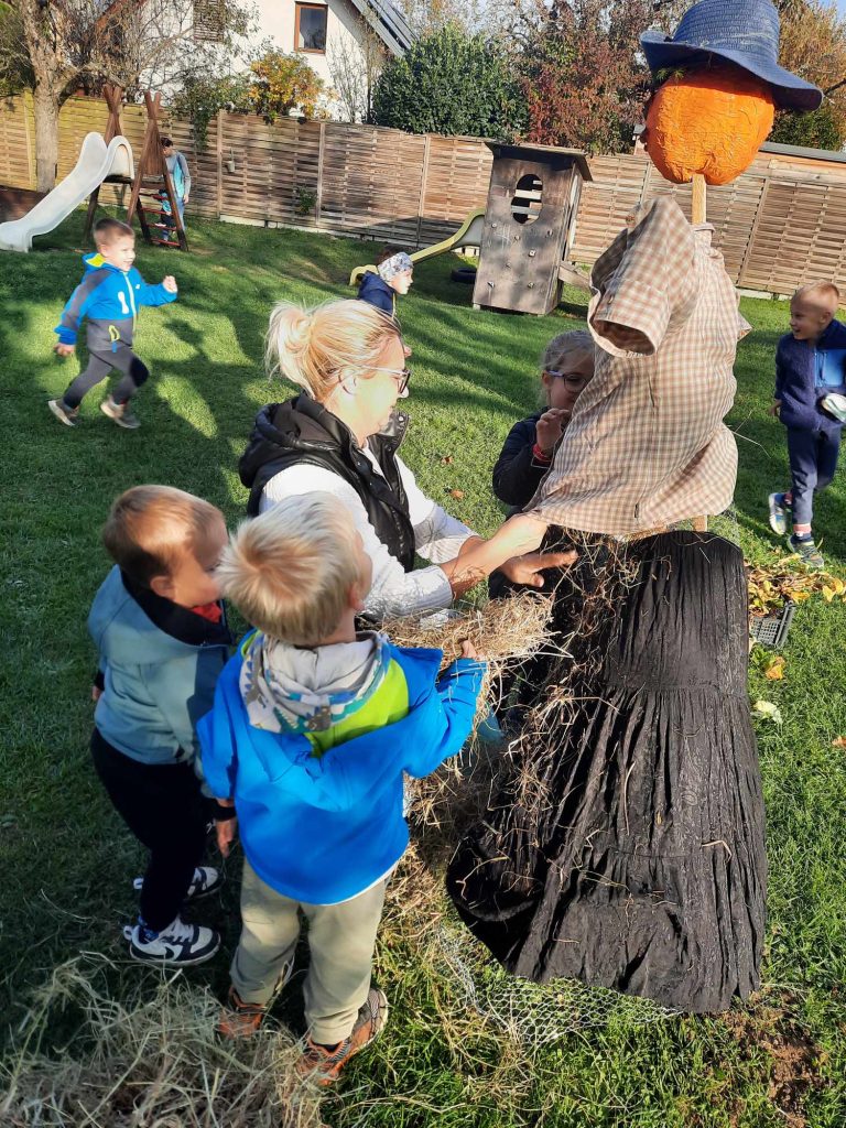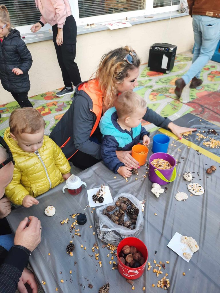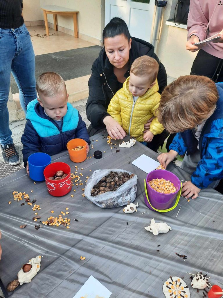 Skupaj smo ustvarjali, se družili in uživali v prijetnem jesenskem vzdušju. Otroci so s starši ustvarjali in naredili tetko jesen. Ob koncu pa so se sladkali s pečenim kostanjem. Pred vrtcem je zadišalo po jeseni, smeh in veselje pa sta napolnila naše dvorišče.