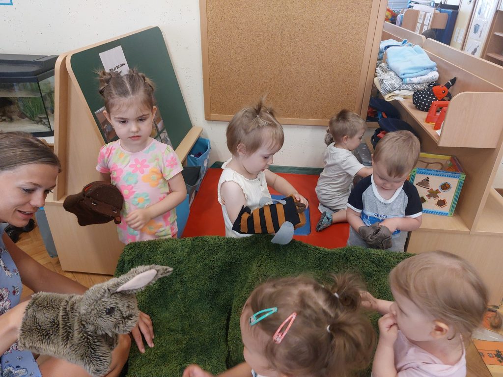 Junija je v naši skupini še posebej veselo. Obiskale so nas lutke, takšne in drugačne. V gledališču smo uživali ob ogledu lutkovne predstave Mali medo, mi pa smo se tudi sami preizkusili v igri z lutkami. Naslednji teden si bomo ogledali še eno predstavo, “Piki dobi prijatelja”. Če imate vstopnico, se nam lahko pridružite!