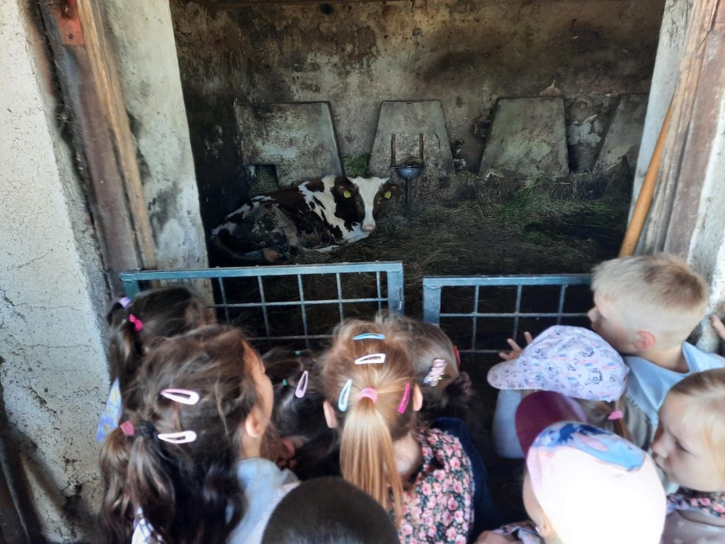 Skupaj z otroki sosednje skupine smo se odpravili na ogled kmetije k vzg Tjaši.