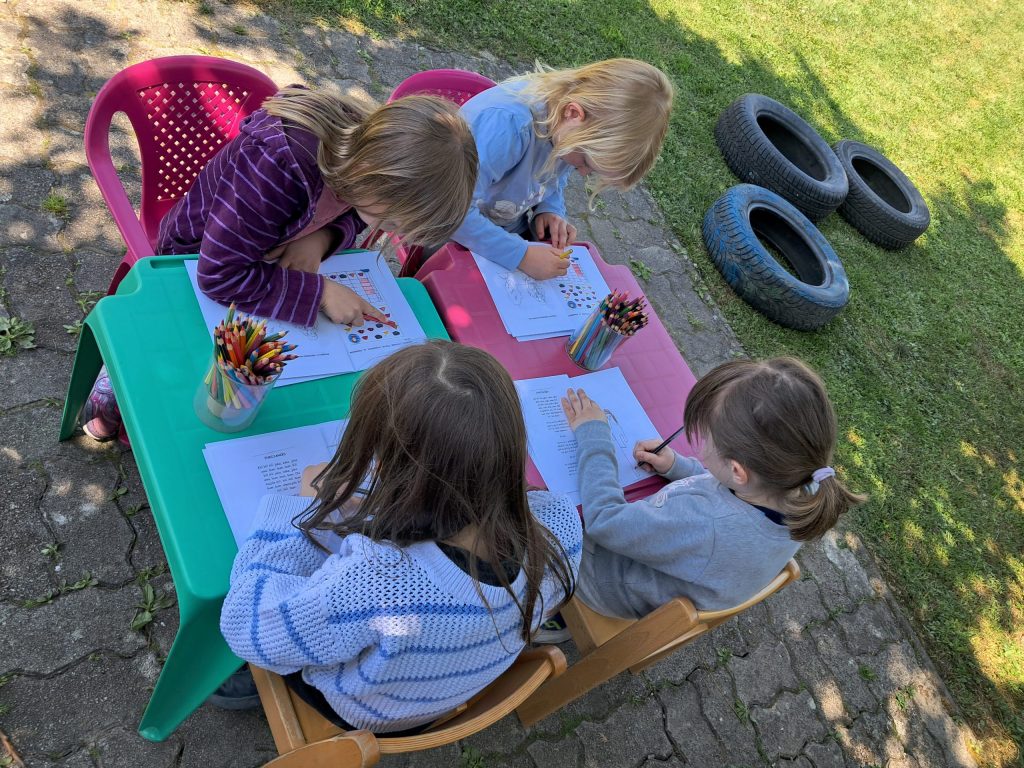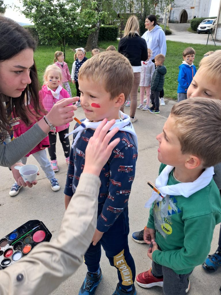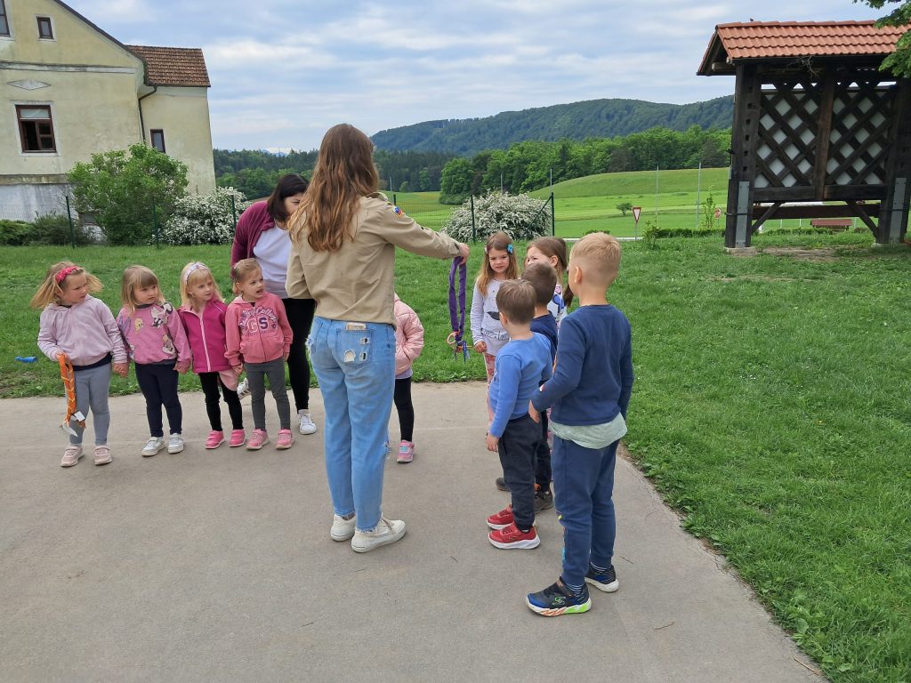 Teden smo namenili tabornikom. V vrtcu sta nas obiskali tabornici, ki sta nam veliko povedali o taborniki, njihovemu delu, oblačilih in življenju v taboru. Skupaj smo se igrali taborniške igre. Izdelali smo si taborniško zastavo, rutice in si izbrali taborniška imena.