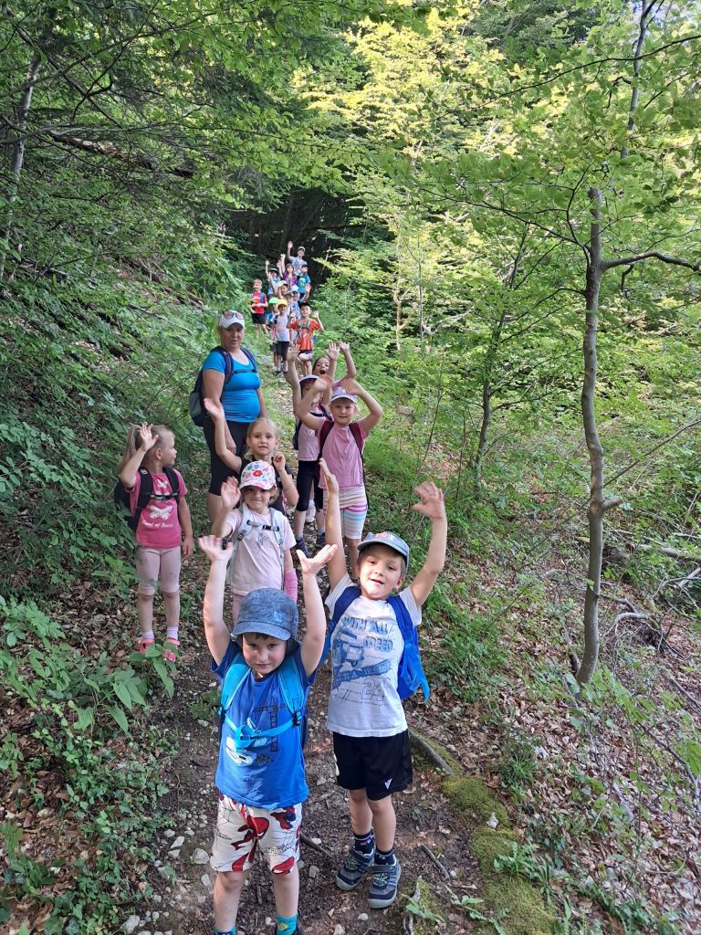 Izvedli smo zaključni pohod na Sevčnik. Pot nas je vodila skozi gozd, kjer smo uživali v prijetnih hladnejših temparaturah.
