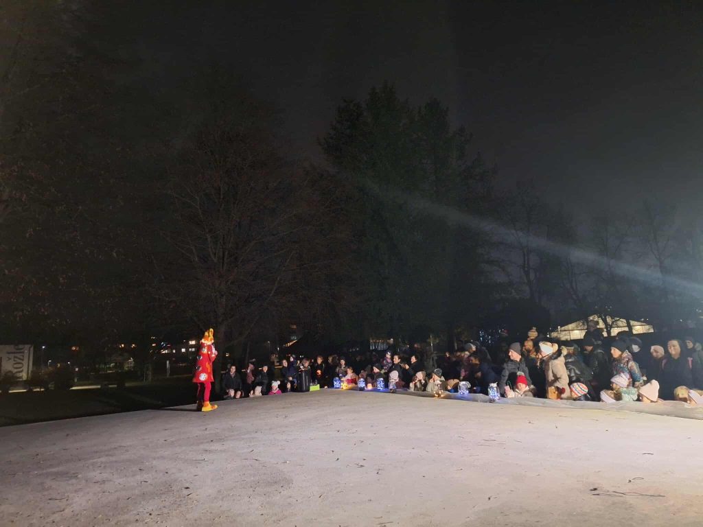 Za nami je čaroben pohod z lučkami, kjer smo se sprehodili skozi pet postaj vse do odra v Sončnem parku, kjer nas je pričakal škrat. Otroci so z navdušenjem odkrivali lučke, hišice in drobna škratova presenečenja ob poti. Na cilju smo se zbrali pri odru in pomagali škratku najti izgubljene rekvizite. Ko je le našel vse, pa smo skupaj zapeli pesem “Enkrat je bil en škrat”. Dogodek je bil prijeten uvod v pravljični december.