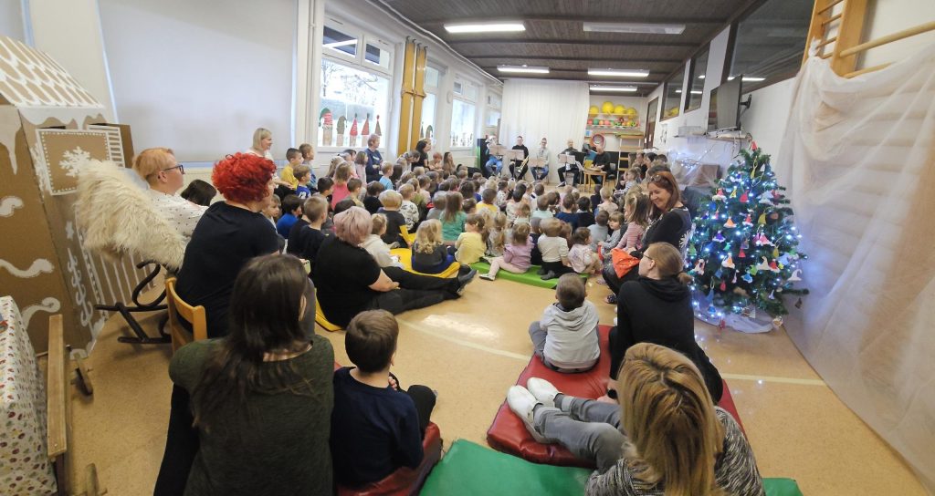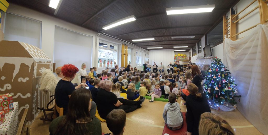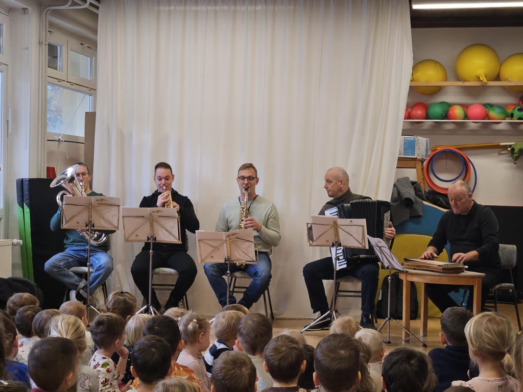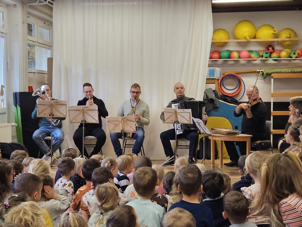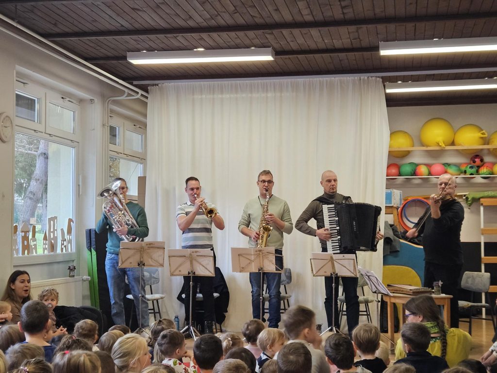 Obiskala nas je Glasbena šola in pripravila prijeten glasbeni nastop. Predstavili se nam je pet glasbenikov na trobenti, citrah, saksofonu, klavirski harmoniki in violini. Otroci so z zanimanjem prisluhnili igranju, pri nekaterih skladbah pa so se nastopajočim tudi z veseljem pridružili s petjem. Obisk je bil poln glasbe, veselja in navdušenja.