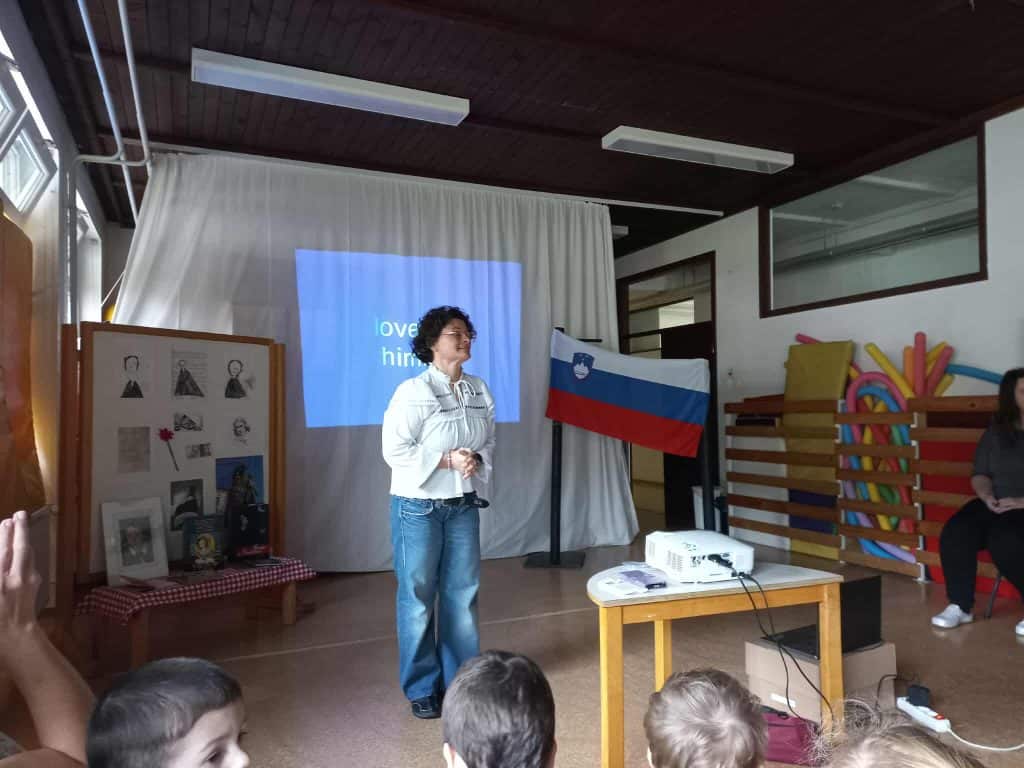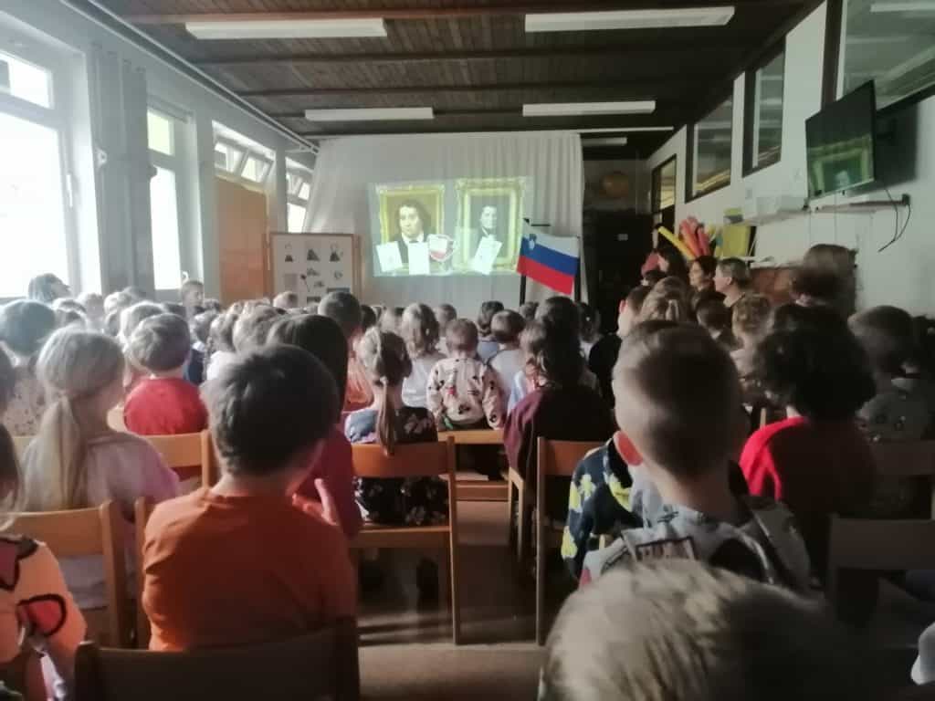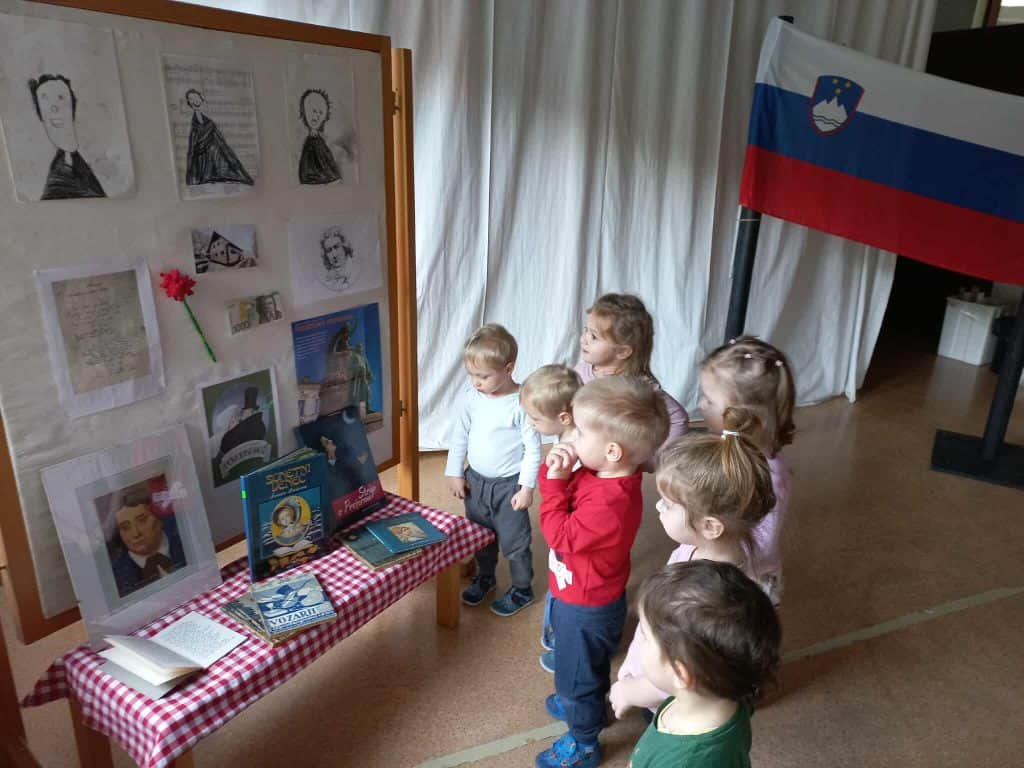 Ob razstavi v počastitev kulturnega praznika smo tudi v našem vrtcu obeležili kulturni dan. Poslušali smo slovensko himno, si ogledali prispevek o življenju našega največjega pesnika Franceta Prešerna in animirano različico njegove pesmi Povodni mož, ki nas je prevzela.