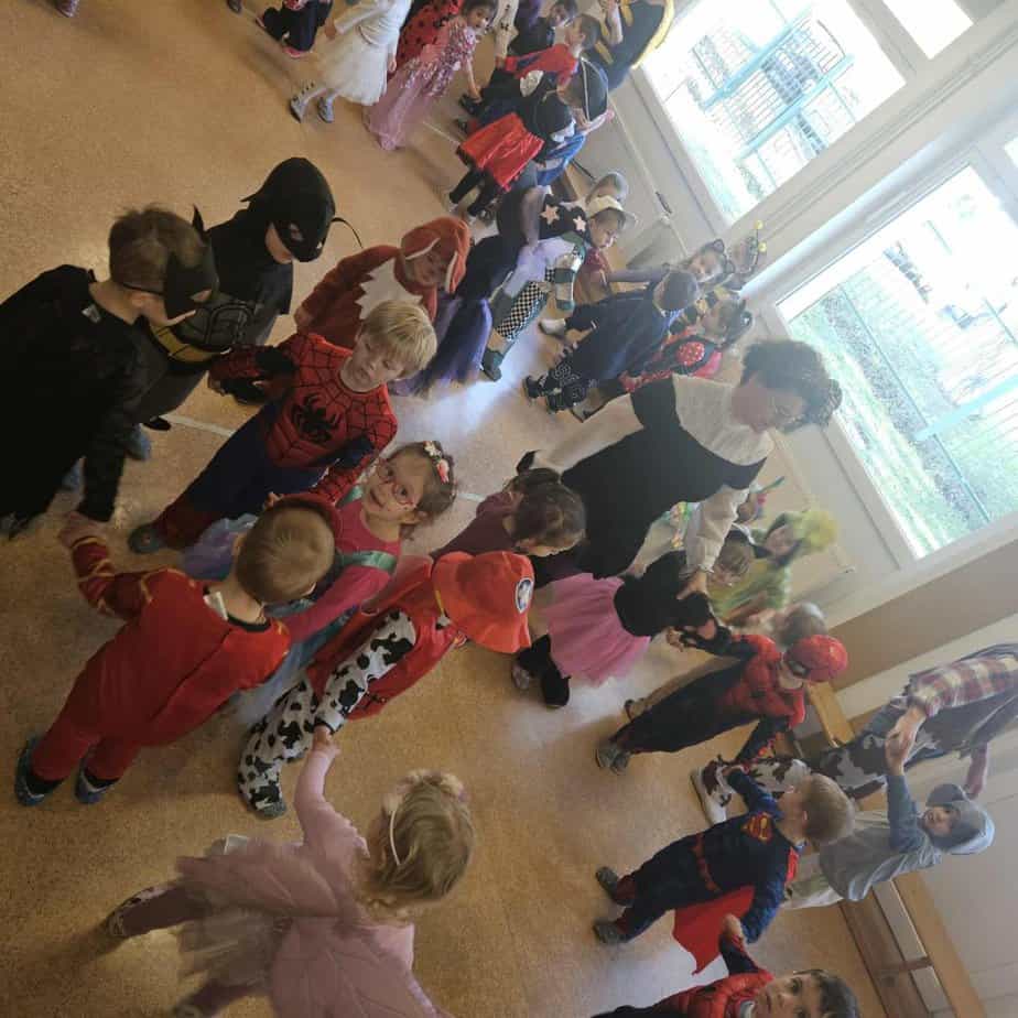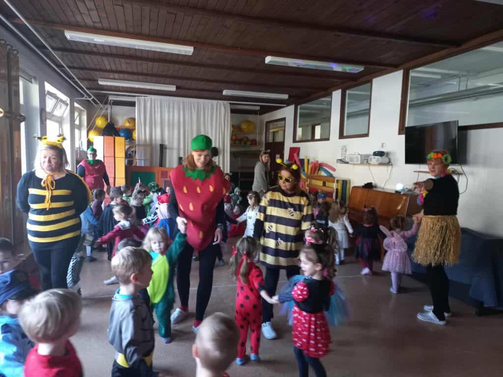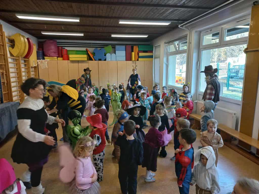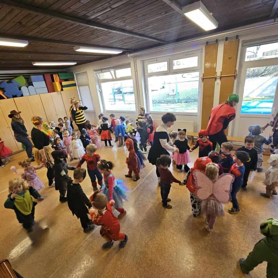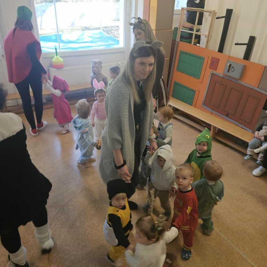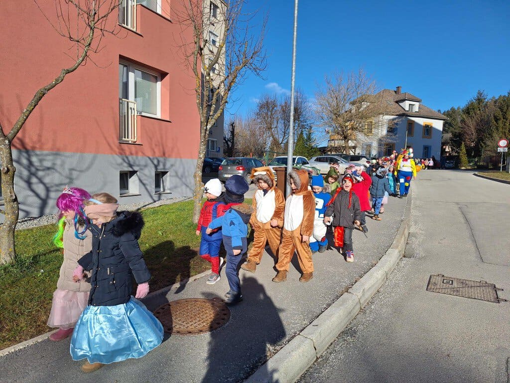 V našem vrtcu je pust prinesel veliko veselja, smeha in razigranosti. Z mlajšimi otroki smo se našemljeni zbrali v telovadnici, kjer smo rajali in plesali ob glasbi. Starejši otroci pa so se odpravili na Titov trg, kjer so rajali v družbi kurentov. Med potjo so se ustavili še na CVIU Velenje in skupaj zapeli pesmi Hip hura in Od hiše do hiše.