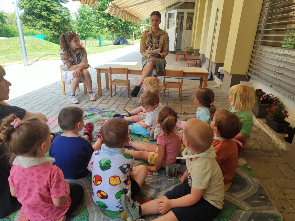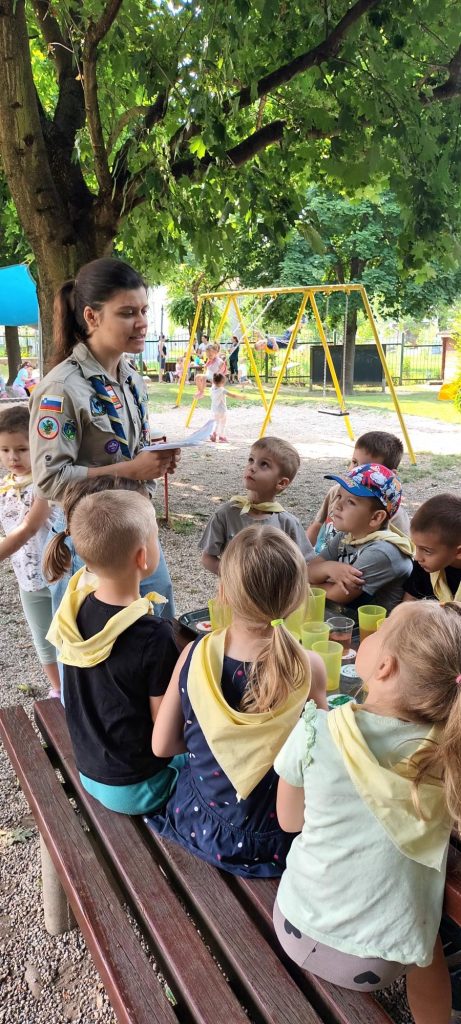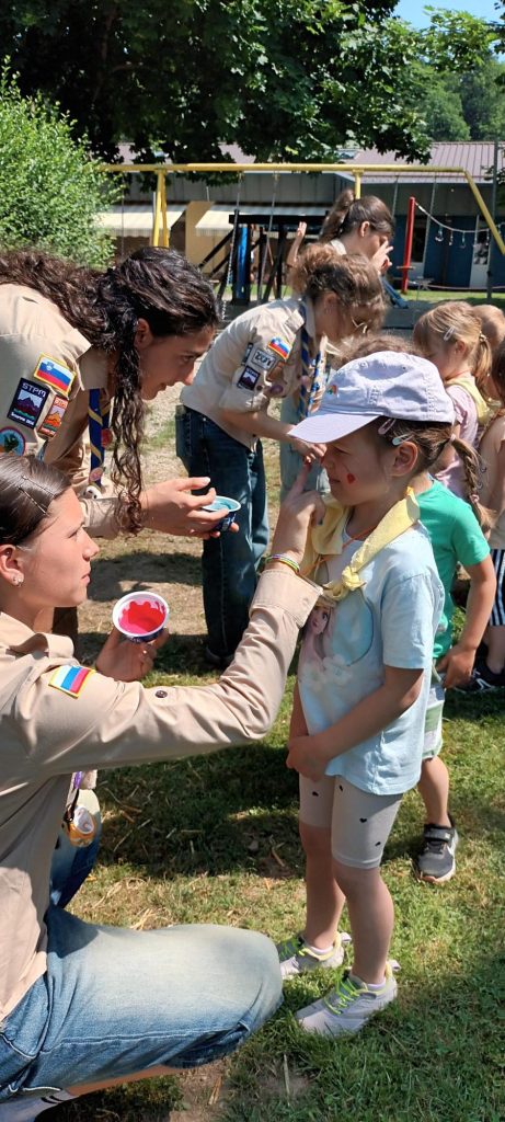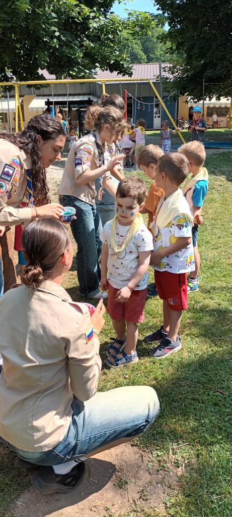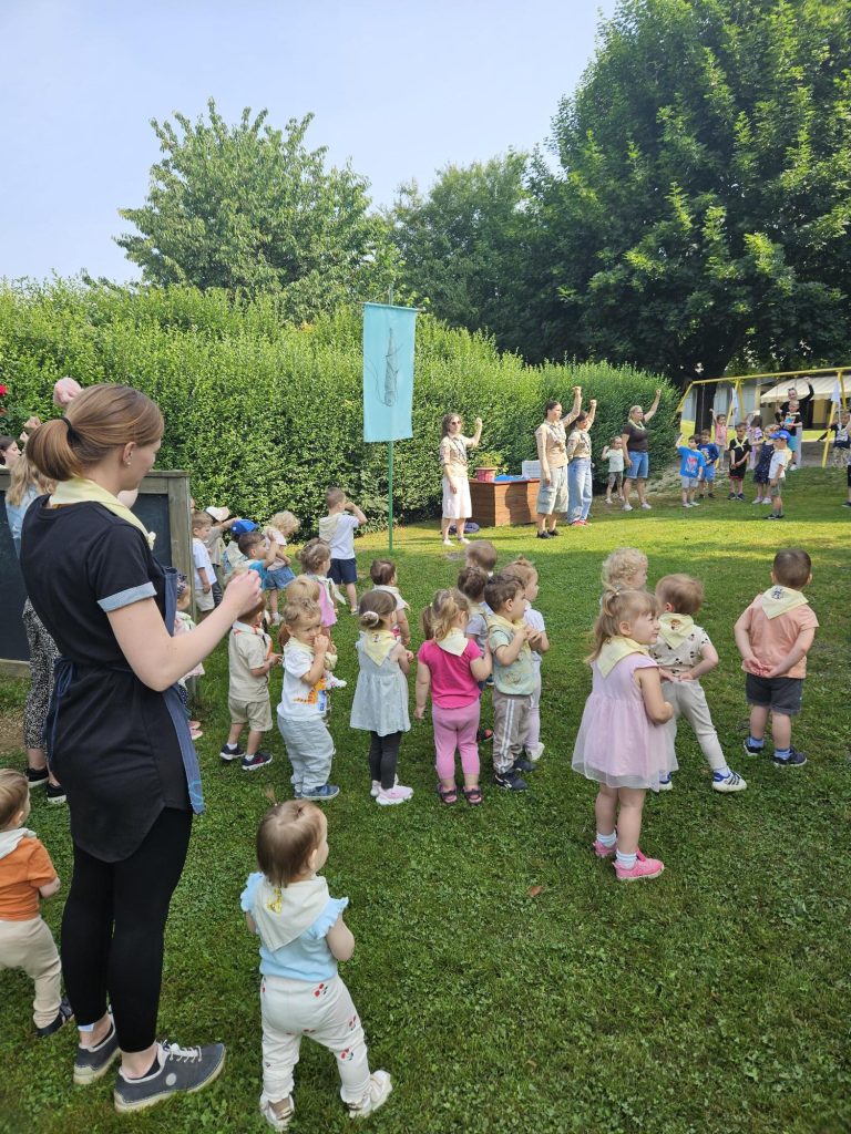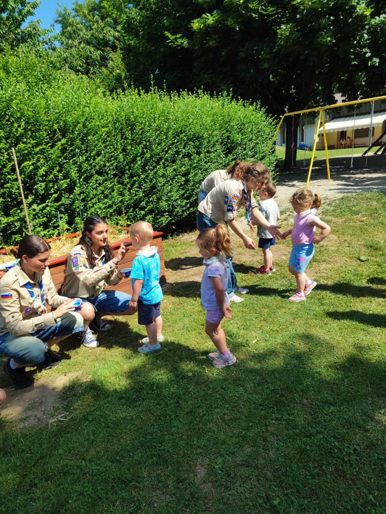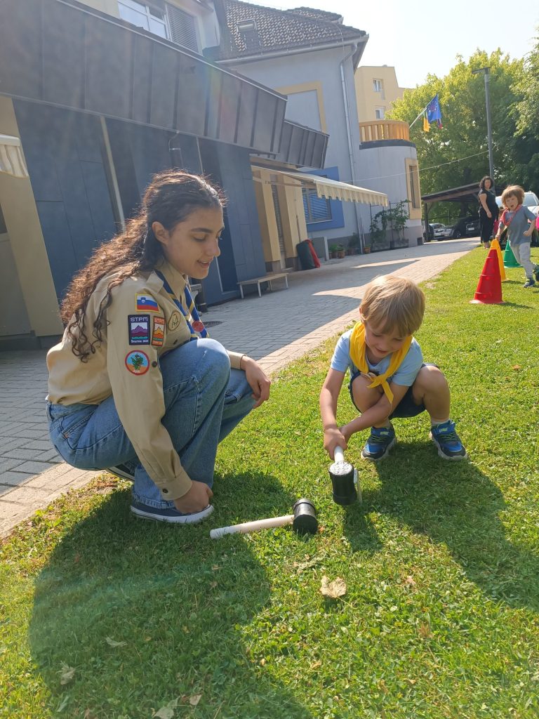 Sledile so zanimive delavnice – otroci so se preizkusili v preprostih vozlih, risanju taborniških simbolov ter igranju zabavnih gibalnih iger, ki jih taborniki pogosto uporabljajo pri svojih srečanjih. Posebno veselje je prinesla “gozdna orientacija” po igrišču, kjer so otroci v manjših skupinah iskali skrite “naravne zaklade”.