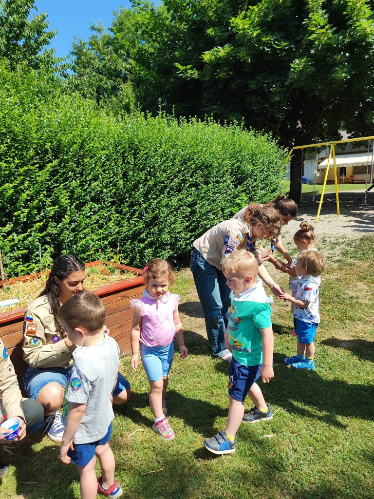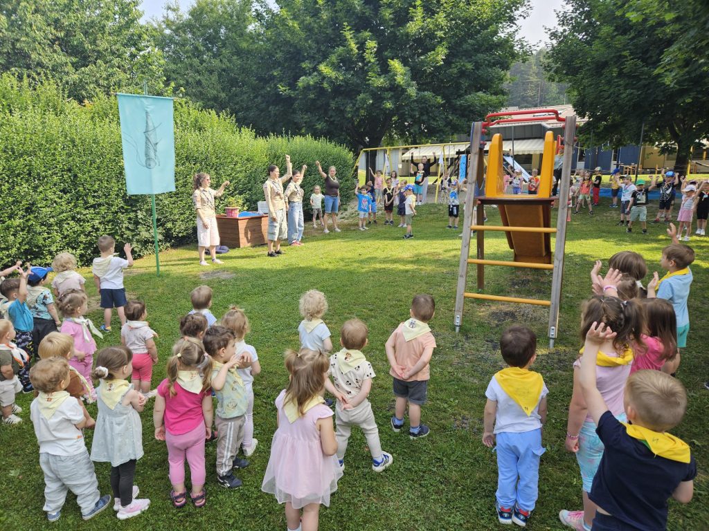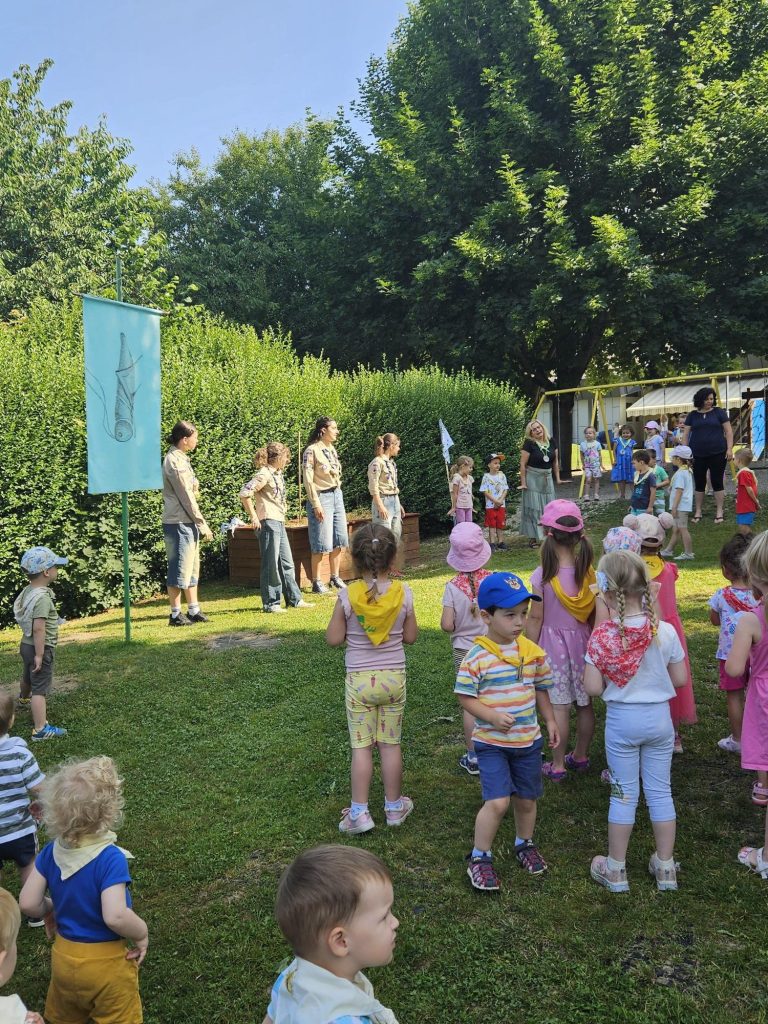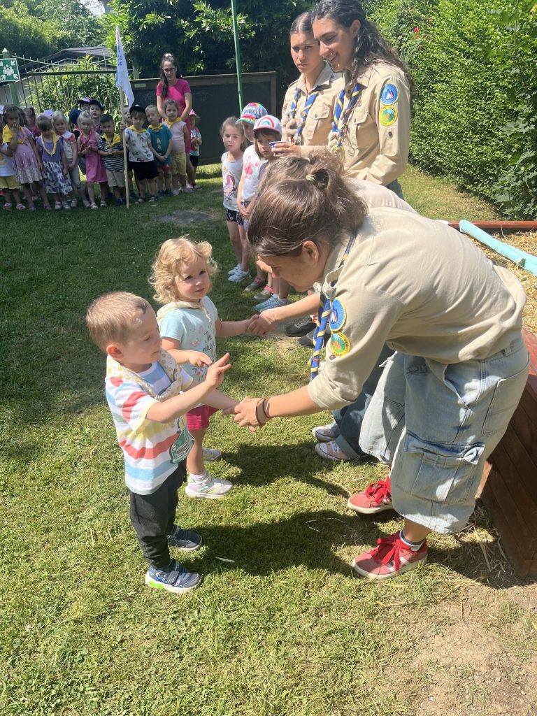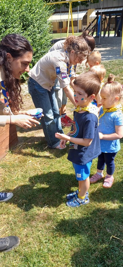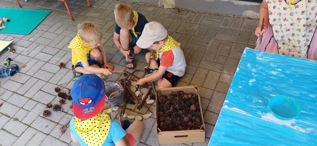 Sledile so zanimive delavnice – otroci so se preizkusili v preprostih vozlih, risanju taborniških simbolov ter igranju zabavnih gibalnih iger, ki jih taborniki pogosto uporabljajo pri svojih srečanjih. Posebno veselje je prinesla “gozdna orientacija” po igrišču, kjer so otroci v manjših skupinah iskali skrite “naravne zaklade”.