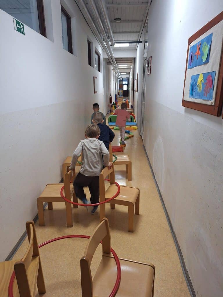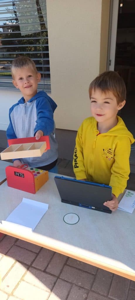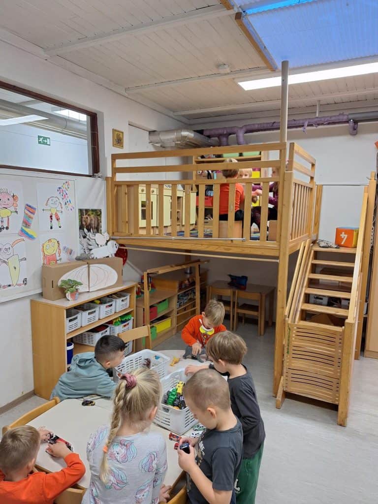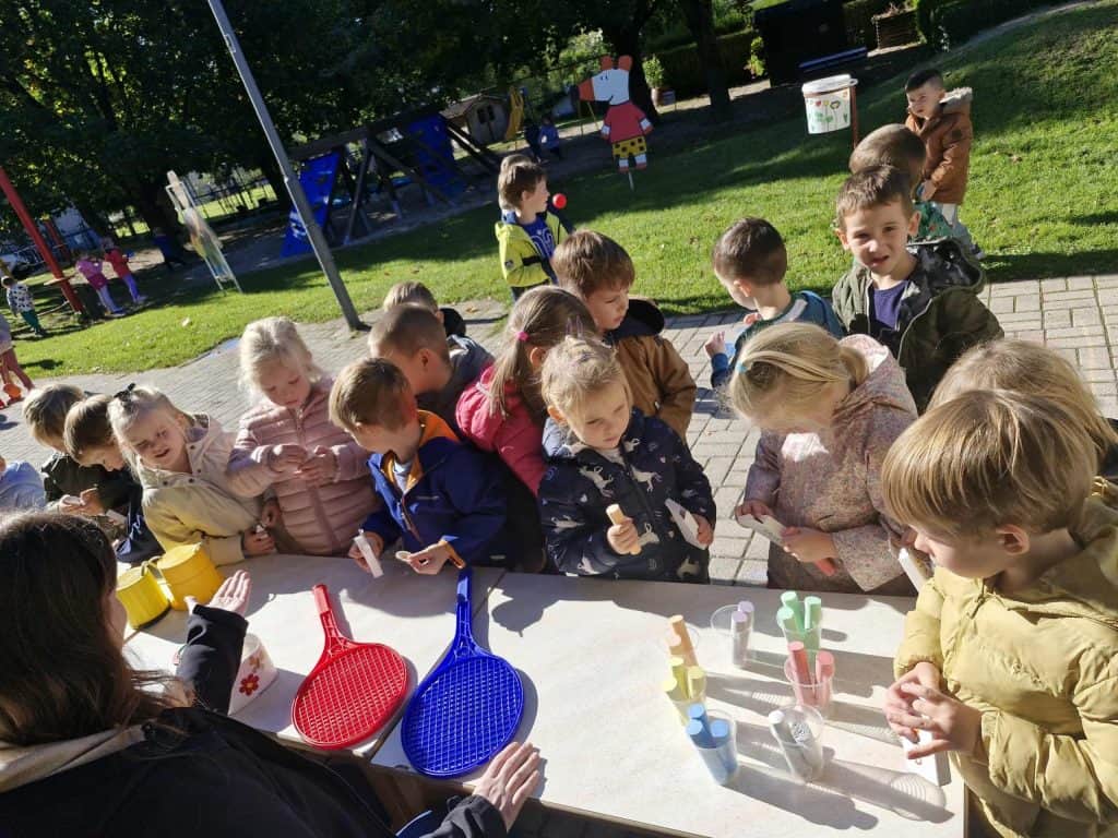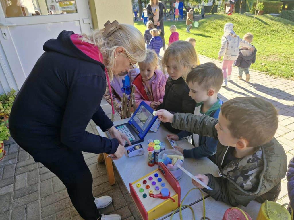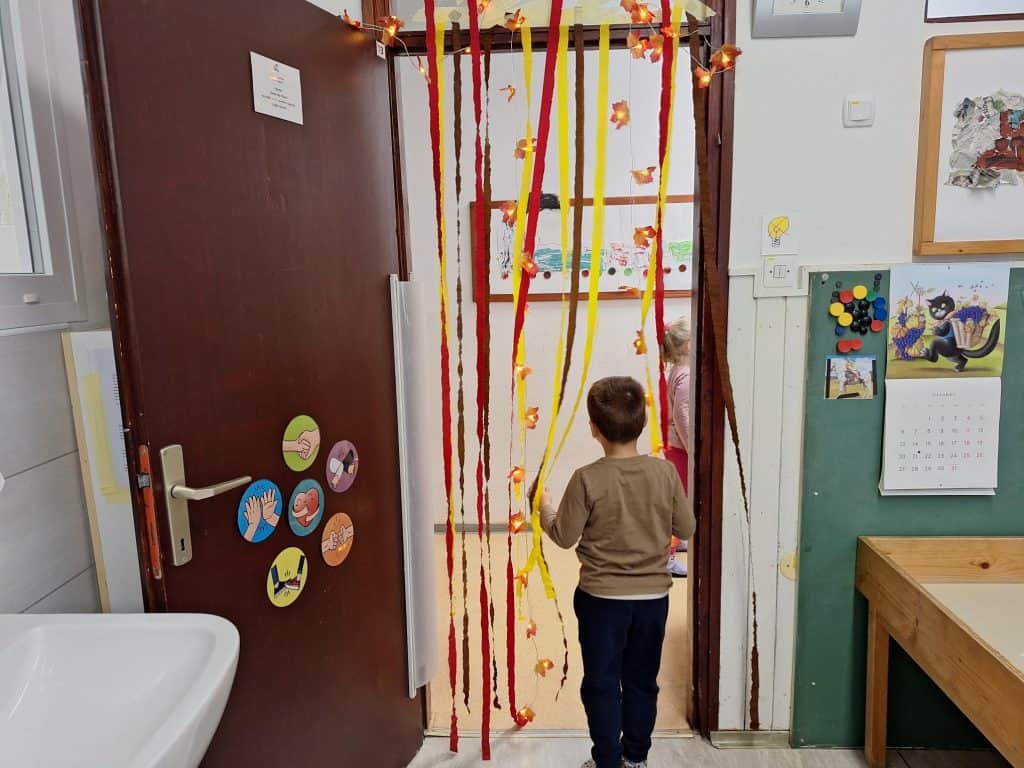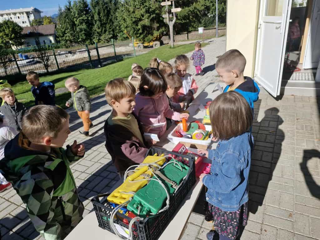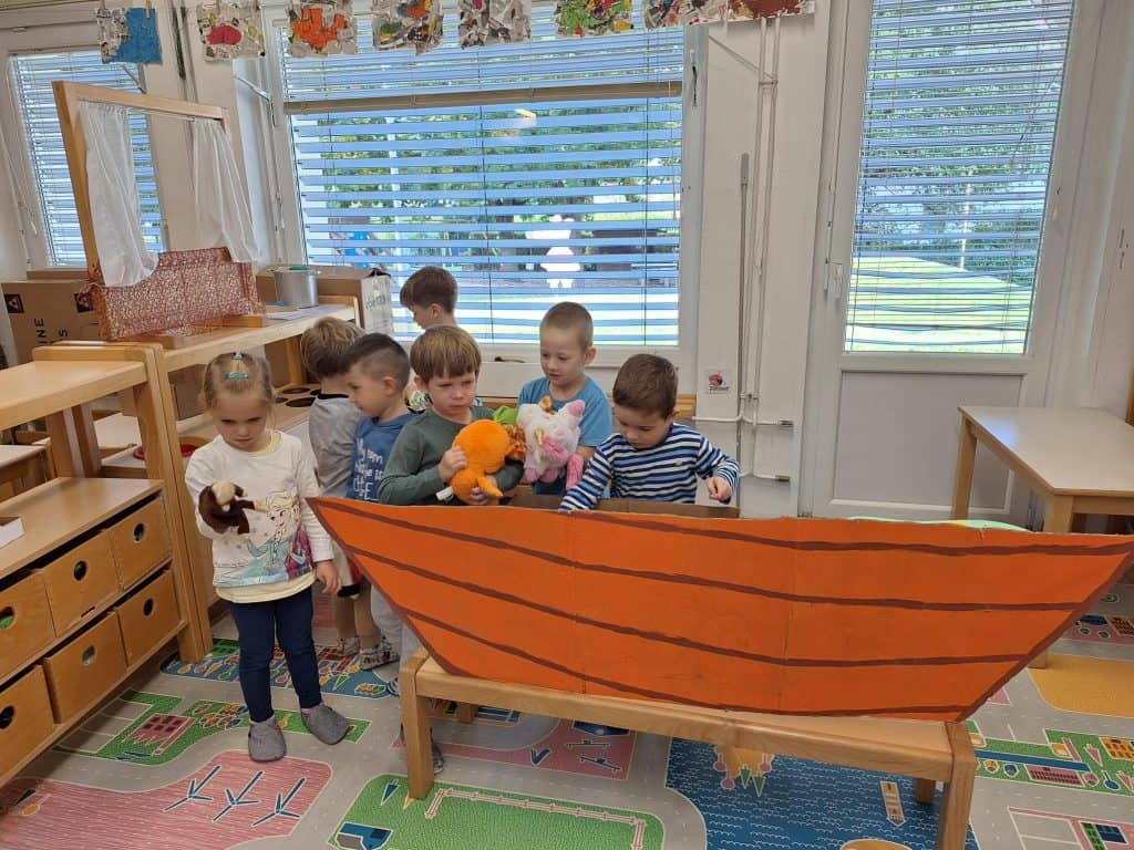 Teden otroka je letos v oktobru potekal pod naslovom Prijaznost ti bo krila dala, vedno reci prosim in hvala. Vsak dan nas je čakalo nekaj posebnega. Pričeli smo ga v ponedeljek, s sloganom “Poligon na dan, prežene zaspanost stran” ter v njem preizkusili svoje spretnosti in se pošteno razgibali. V torek smo bivali, igrali, ustvarjali in raziskovali v igralnici prijateljev iz sosednje skupine. Sredo je popestrila “Prodajalna igrač in tetka Jesen”, kjer smo na stojnicah kupovali in prodajali igrače in rekvizite. V četrtek smo si ogledali lutkovno krasno predstavo Bobek in barčica, kjer smo tudi sodelovali ob prepevanju znanih pesmi med predstavo. Teden smo zaključili s “Čudežnimi vrati” ter prehajali med igralnicami in se družili, ustvarjali in sodelovali s prijatelji iz naše enote. Za nami je čudovit teden igre, ustvarjalnosti in veselja.