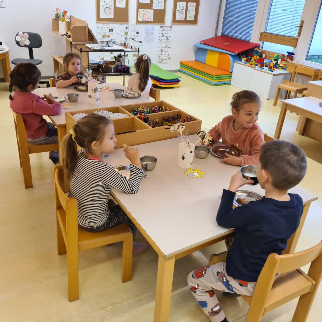 21.11.2025 smo imeli Tradicionalni slovenski zajtrk, ki je sestavljen iz kruha, masla, medu in mleka. Za sadno malico pa smo se posladkali z jabolkom, ki smo ga osladili z medom. Presenetila nas je tudi čebelarka Tajda, ki nam je predstavila delo čebelarja in izdelke iz medu. Različne vrste medu smo tudi poskusili. Namen projekta je osveščati otroke o pomenu zajtrka in prednostih lokalno pridelanih živil slovenskega izvora.